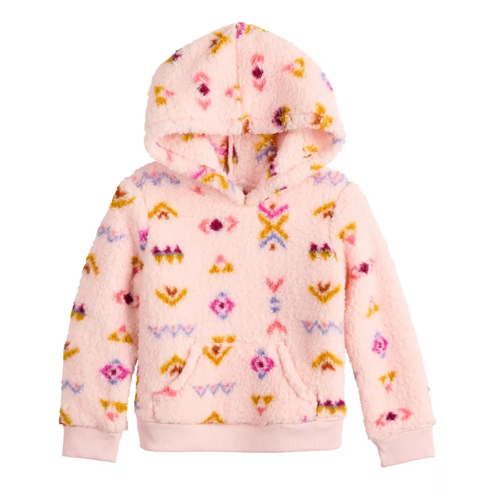 Give her cold weather wardrobe a cuddly refresh with this cozy baby girls’ sherpa pullover hoodie from Jumping Beans.