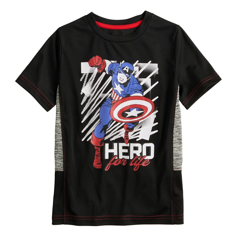 This boys’ Jumping Beans Captain America active tee lets him show off his superhero fashion!