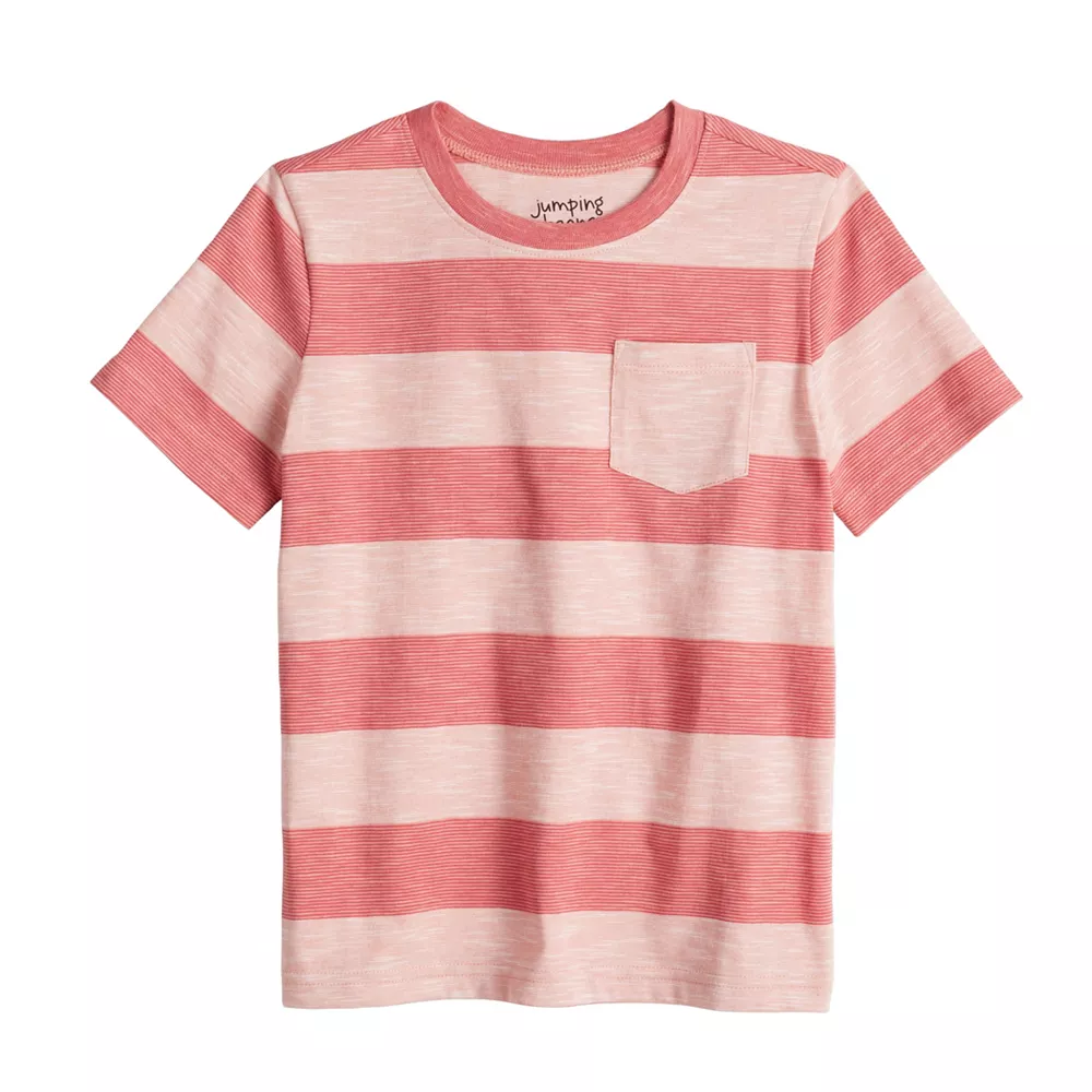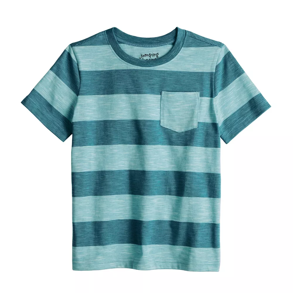 Keep his look classic in this boys’ striped pocket tee from Jumping Beans.