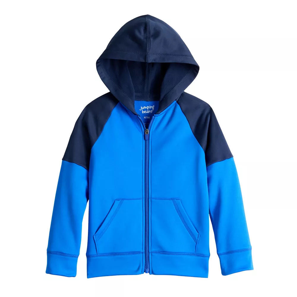With its cozy fleece construction and cool colorblock accents, this boys’ hoodie from Jumping Beans is sure to make him stand out.