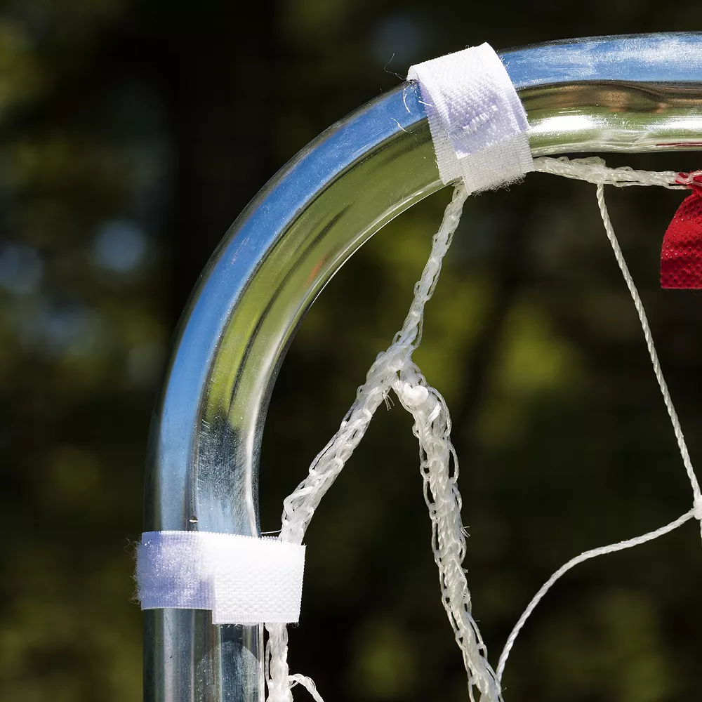 - Durable 4″x 4″ square net uses self-stick strips that attach with ease, maintain the goal net in place and will keep soccer balls from flying across your yard while you develop your scoring skills