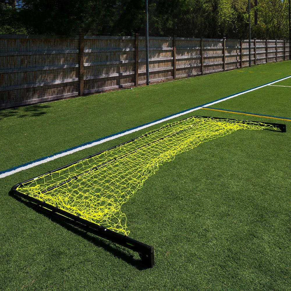 Transform your backyard into a soccer field with this Franklin Sports 5-ft x 10-ft Black Folding Soccer Goal. Aspiring players can practice every day, develop precision kicking skills, play short sided soccer with friends or family as you develop your goal keeping skills. A vibrant yellow net also adds an eye-catching, cool look.