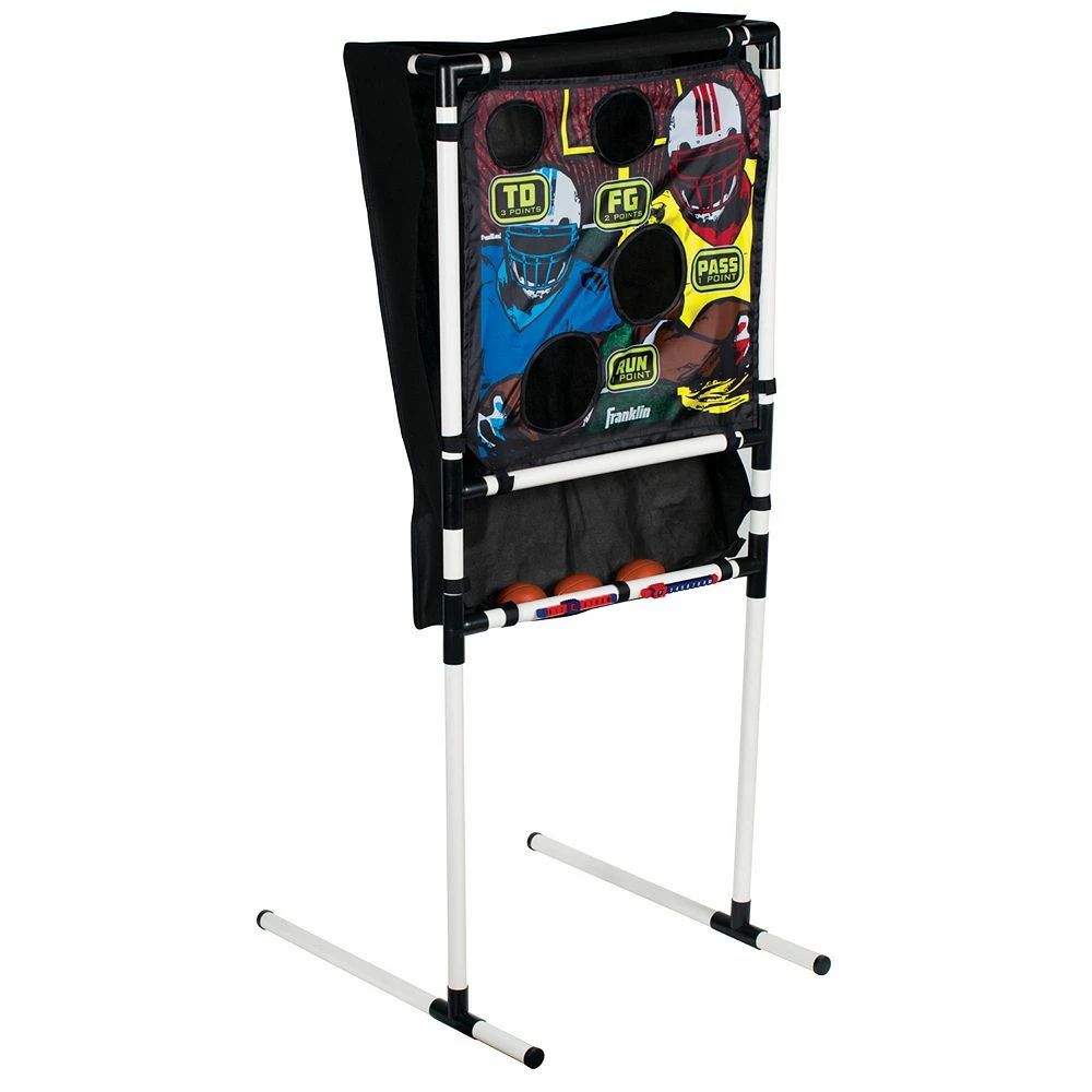 Aim at the targets and practice your best throw with this Franklin Sports football target toss.