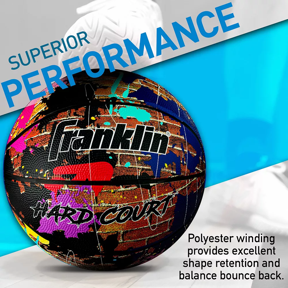 This Franklin Sports HARD COURT 29.5-inch official size basketball is made with a highly durable rubber covering to stand up to the rigors of outdoor basketball year after year.