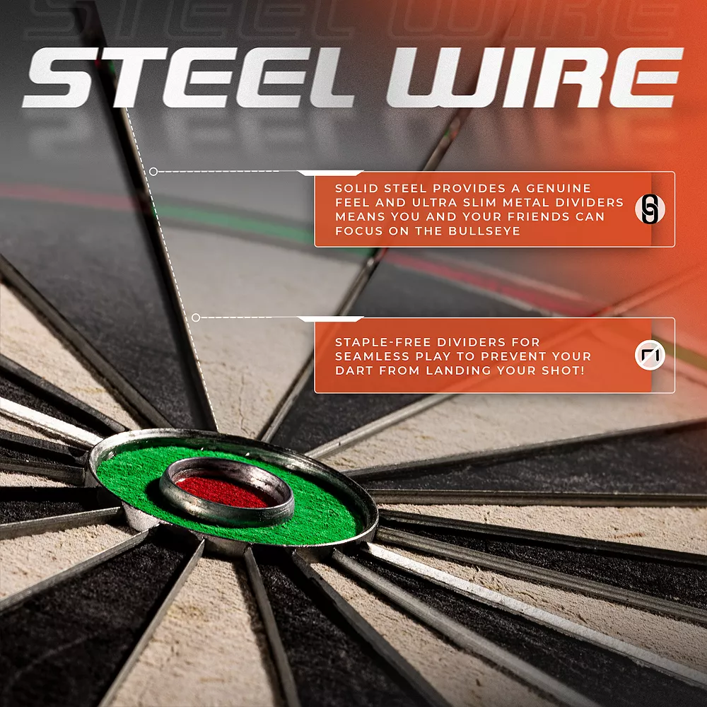 - BLADE DIVIDERS – All the Pros know, you want to be playing with staple free blade dividers. This means thinner metal dividers between each scoring section and no staples to prevent your dart from landing your shot! This means more time adding up your score and less time picking up your darts off the floor!