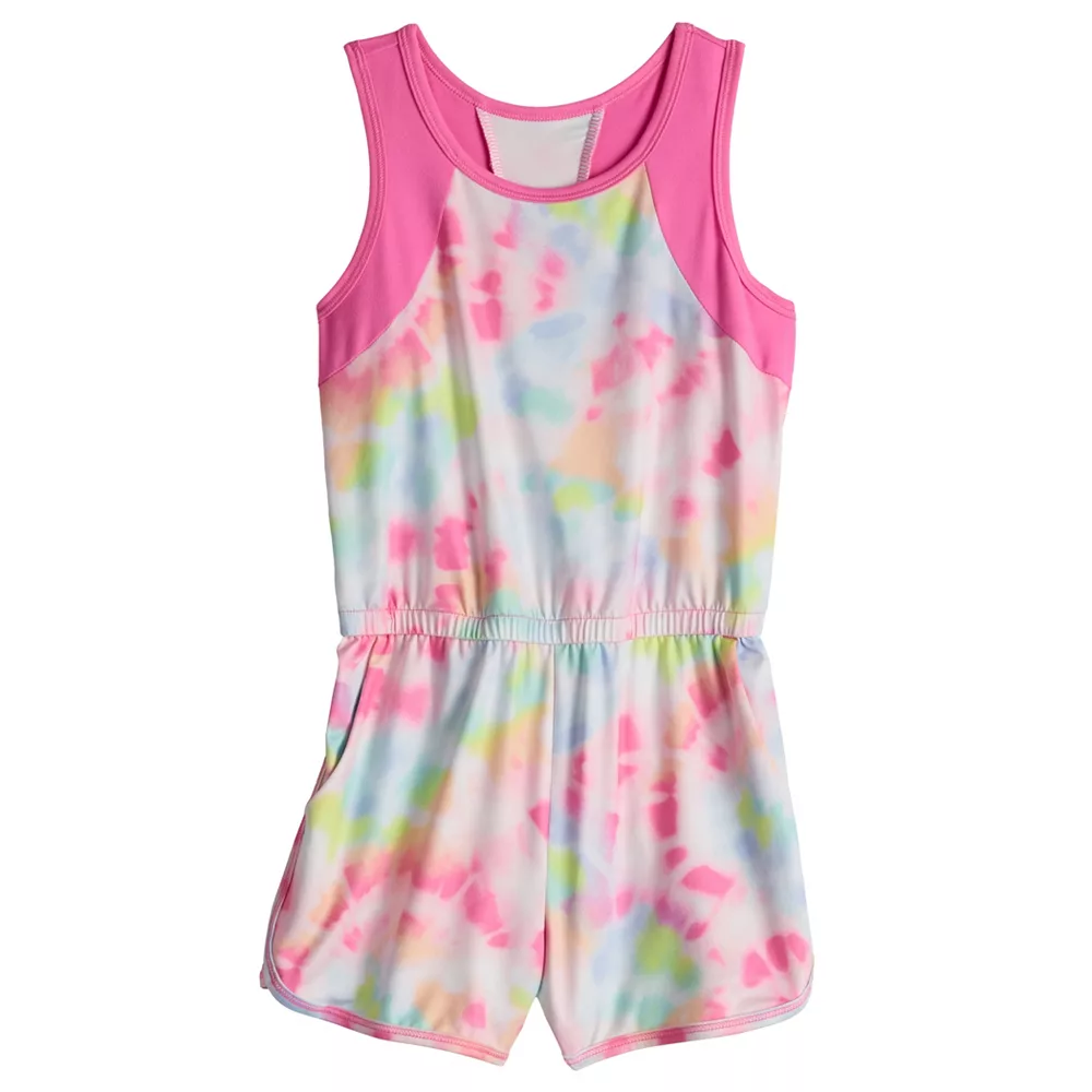 She’ll be cute and ready to play in this girls’ allover print active romper from Jumping Beans.