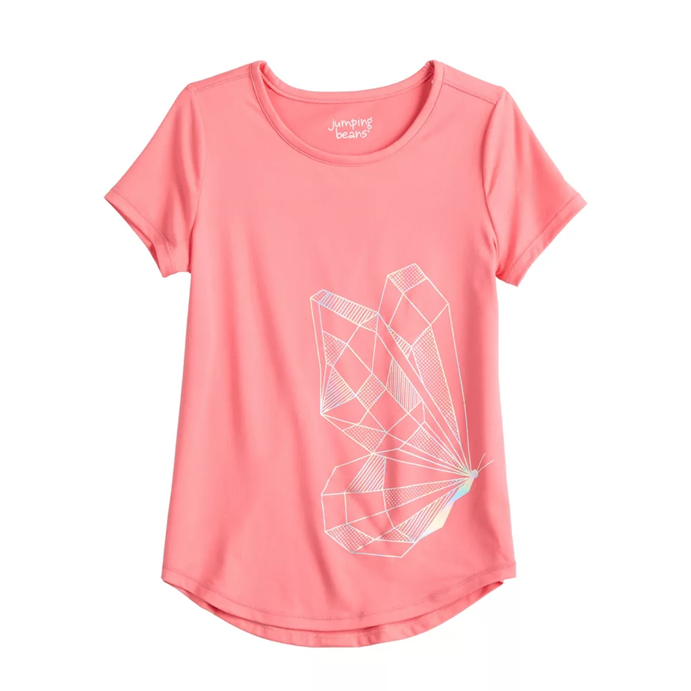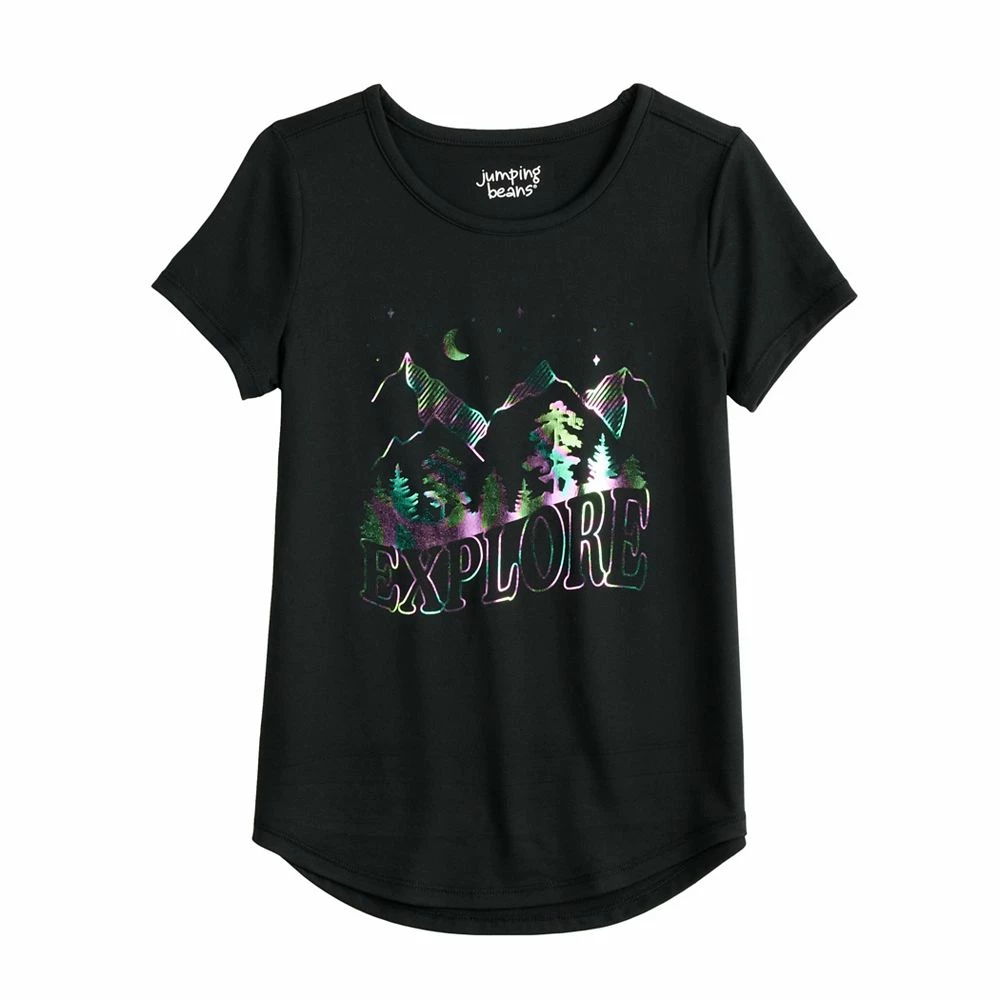 She’ll be ready for playtime in this girls’ short sleeve shirttail hem active graphic tee from Jumping Beans.