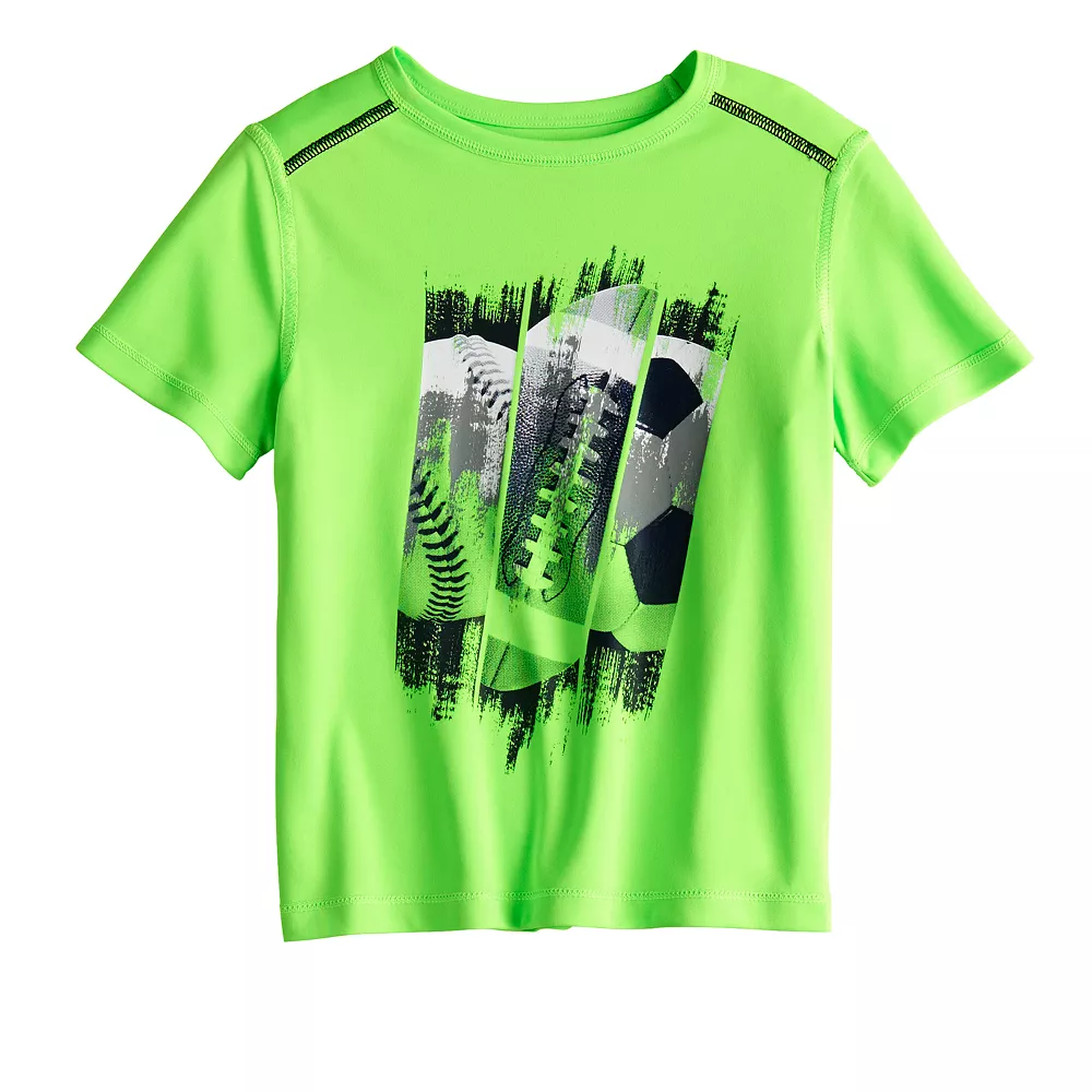 He’ll stay active in style in this boys’ Jumping Beans adaptive active tee.