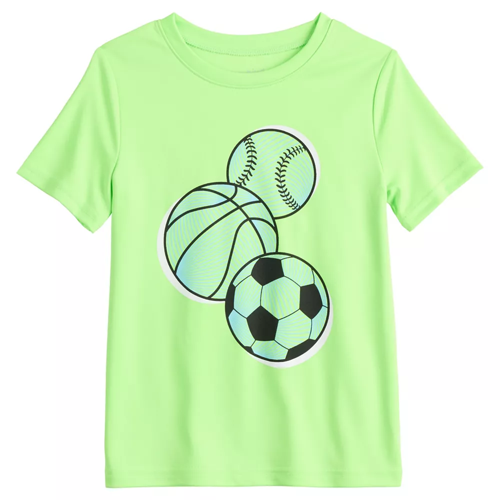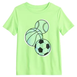 This boys’ Jumping Beans active tee features a double-layer design with sports ball graphics.