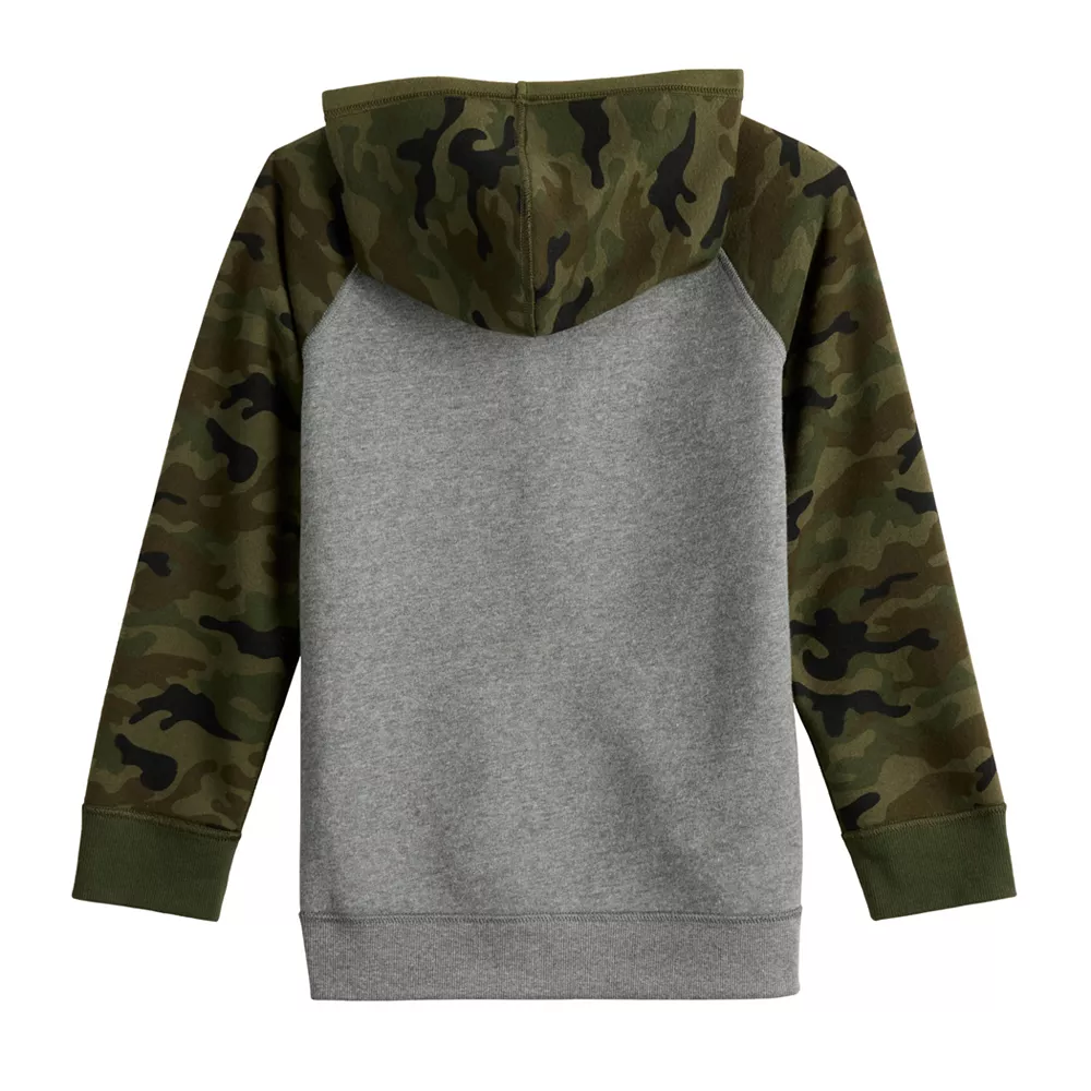 This toddler boys’ raglan sleeve hoodie from Jumping Beans is sure to be one of his cool weather favorites.