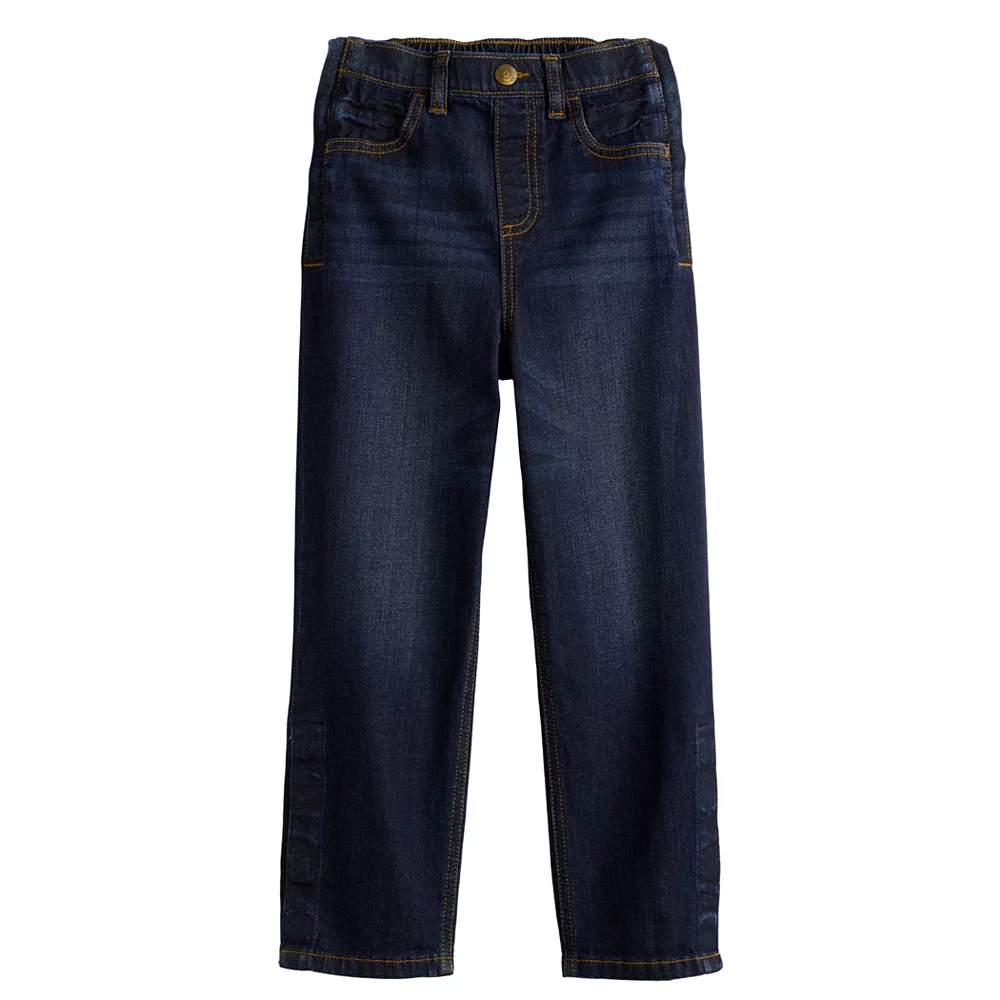 Keep his look classic with these ultra-comfy toddler boys’ pull-on denim pants from Jumping Beans.