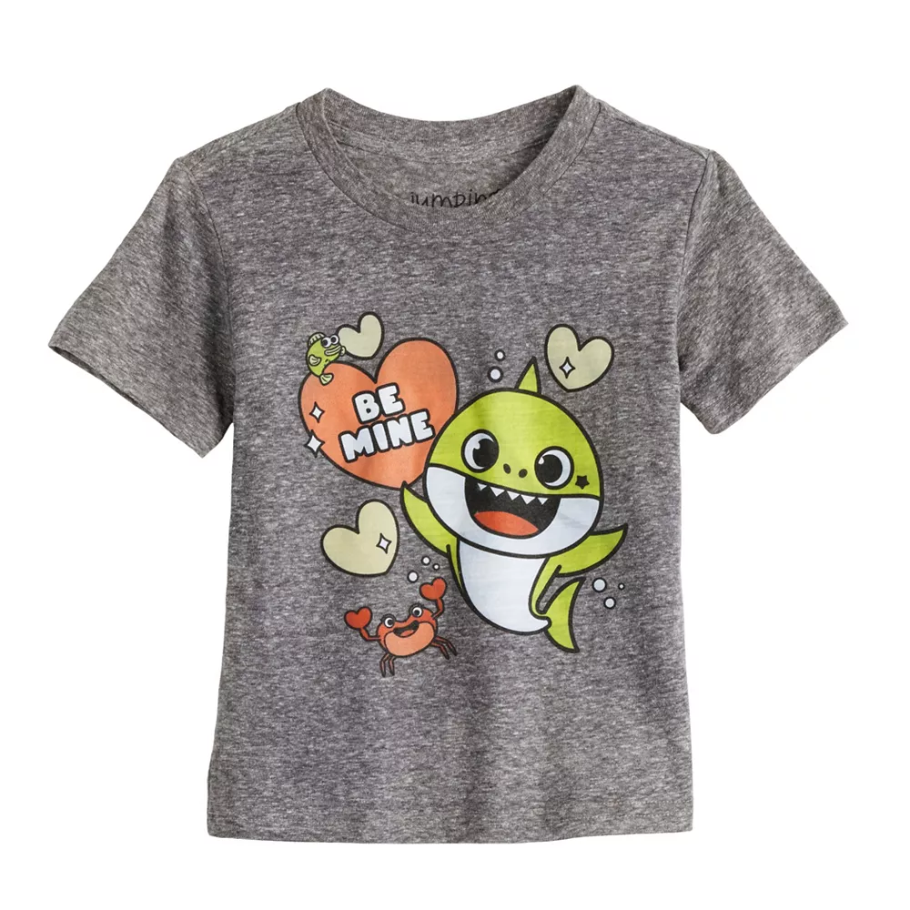 A sweet Valentine’s Day look will give him holiday style with this boys’ Baby Shark Be Mine graphic tee from Jumping Beans.