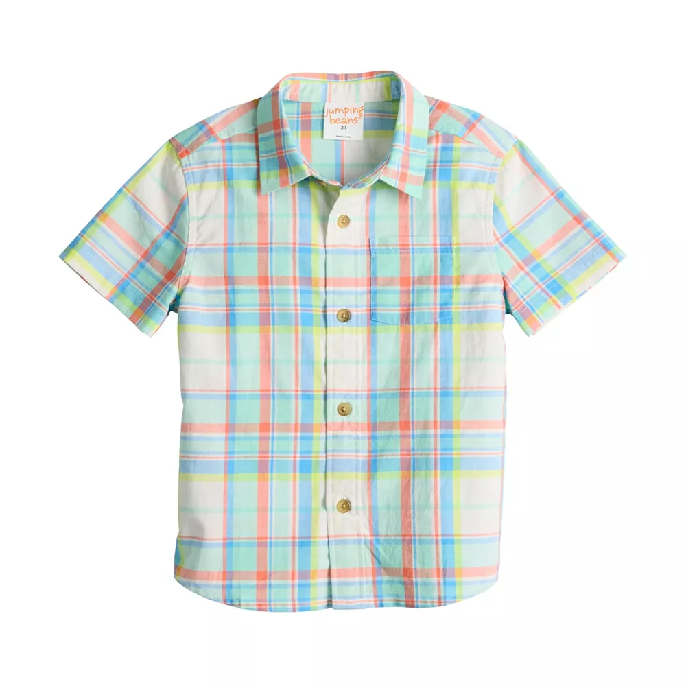 Add Jumping Beans fashion to his looks with this button-front, short sleeved shirt.