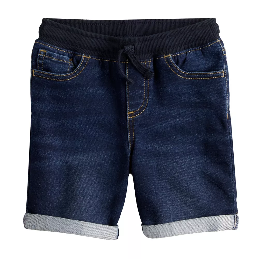 Your little guy will look oh-so-stylish in these comfy knit toddler boys’ pull on denim shorts from Jumping Beans.