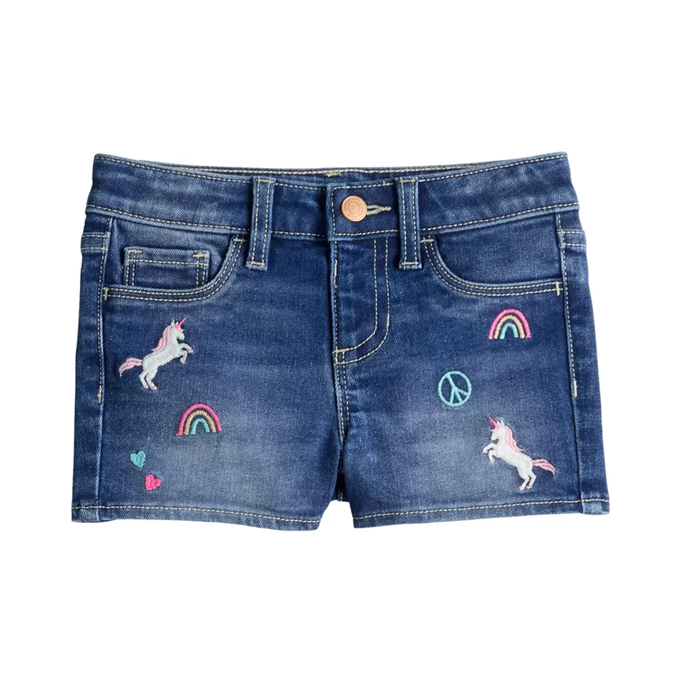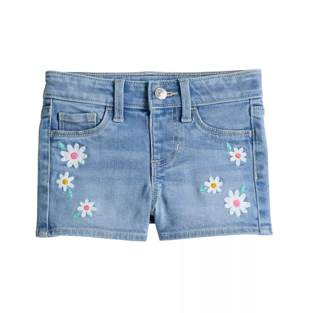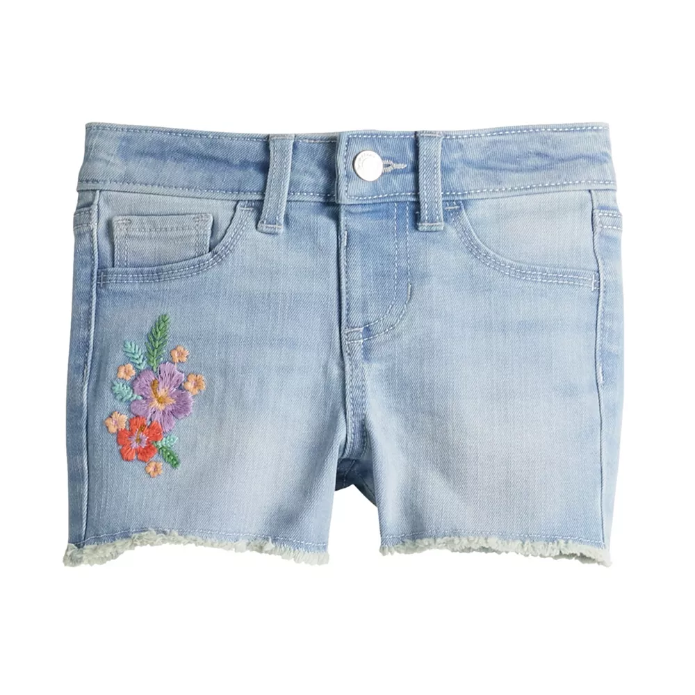 Give her a cute look for sunny days with these girls’ Jumping Beans embroidered denim shorts.