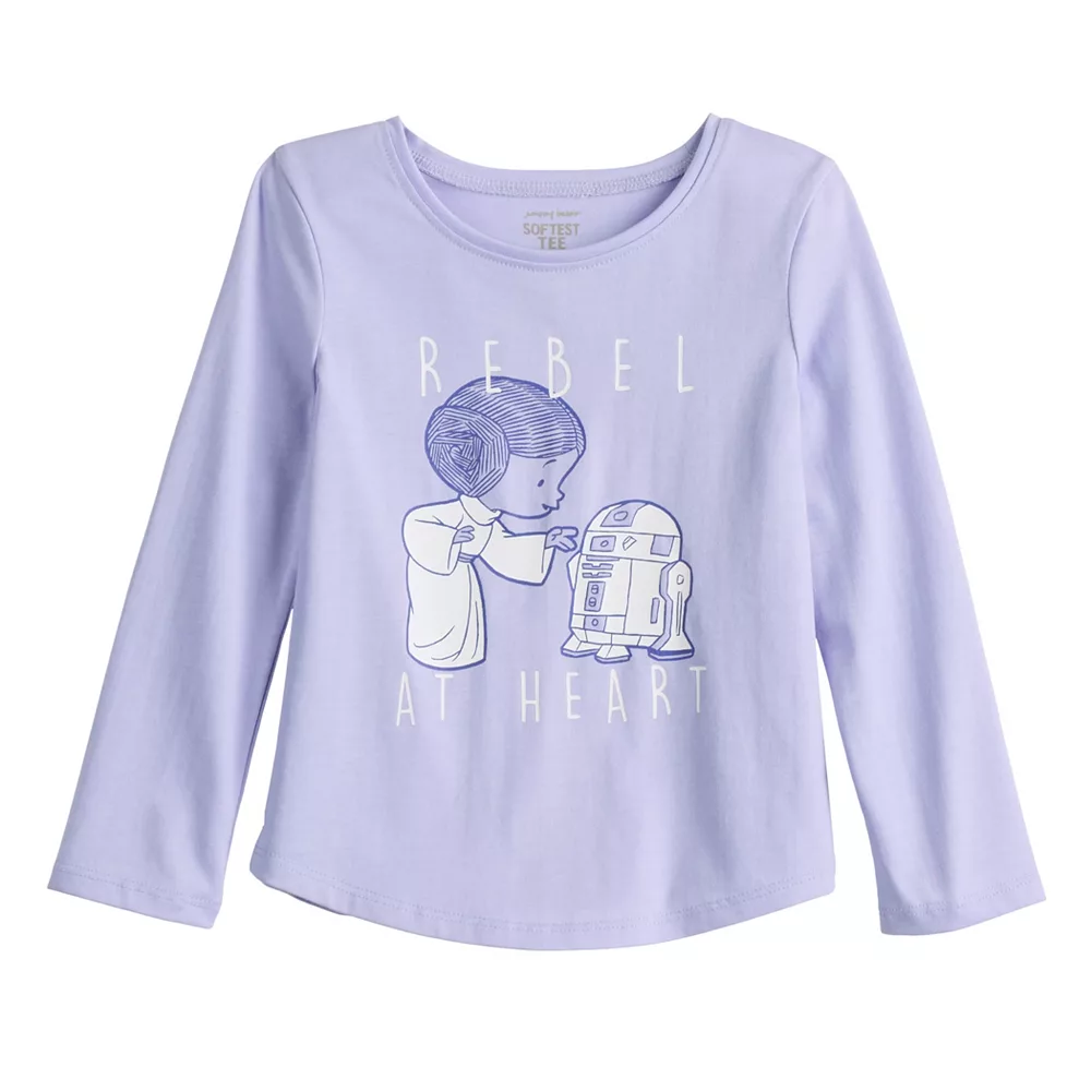 The Force will be with her in this toddler girls’ Star Wars Princess Leia and R2-D2 long sleeve graphic tee from Jumping Beans.