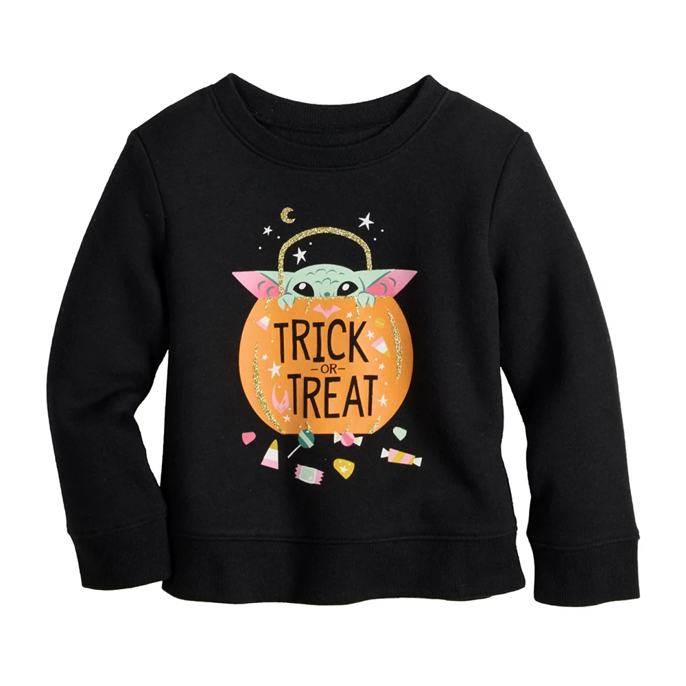 She’ll look spooktacular in this toddler girls’ The Mandalorian Halloween graphic sweatshirt from Jumping Beans.